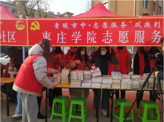 我校永利yl23411集团党总支书记宋建修代表永利yl23411集团把党员师生捐赠的400册图书捐给矿区街道东花园社区图书室,永利yl23411集团和机关四支部20名师生党员志愿者参加了服务进社区、志愿入家门活动。
