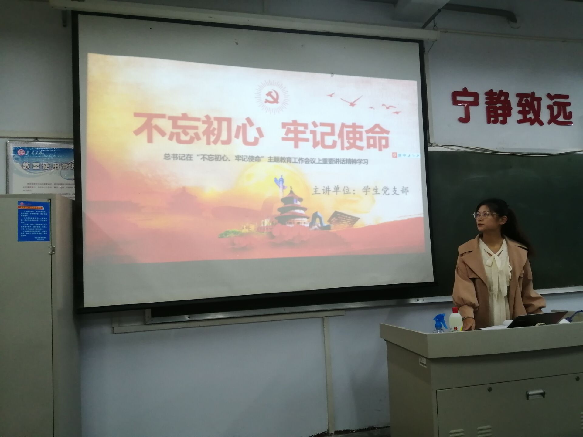 为加强入党积极分子的党性建设,使入党积极分子从思想上真正入党,永利yl23411集团于10月15日晚在文科楼115教室开展以“不忘初心 牢记使命”的主题教育,集中学习习近平总书记重要讲话,张卫婷、胡亚楠同志受邀担任主讲。