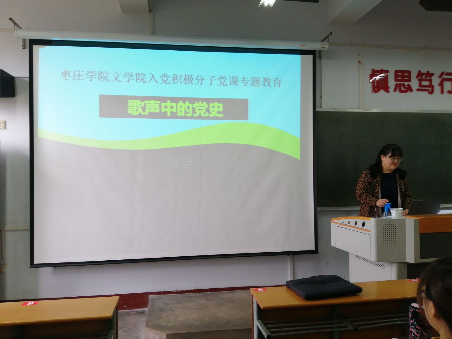 为帮助入党积极分子梳理党史脉络,加强对红歌的鉴赏,永利yl23411集团于10月14日下午在文科楼317教室开展了课堂教学——歌声中的党史,永利yl23411集团团总支书记韩笑老师受邀担任主讲。