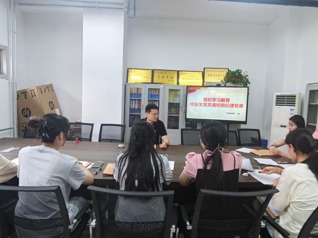 朱旭以“党纪学习教育:毕业生党员离校前纪律党课”为题,首先回顾了党的纪律建设的重要性和必要性,强调了党员必须遵守党的纪律,维护党的团结和统一。随后,他结合当前形势和学院实际,深入剖析了党员在未来日常生活和工作中可能遇到的纪律问题,并提出了具体的解决方法和建议。