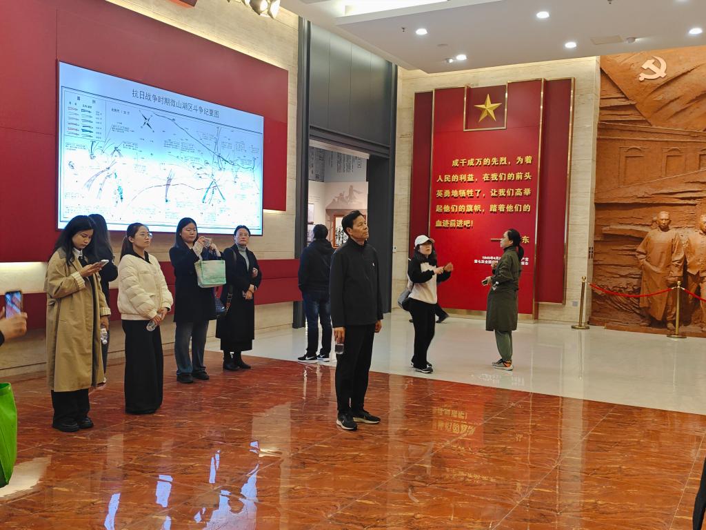 随后,大家参观了铁道游击队纪念馆。纪念馆内,一幅幅珍贵的历史照片、一件件充满故事的展品,生动再现了当年铁道游击队英勇抗日的光辉事迹。师生党员们仔细聆听讲解员的介绍,不时驻足凝视,心中充满了对革命先烈的敬仰和缅怀。