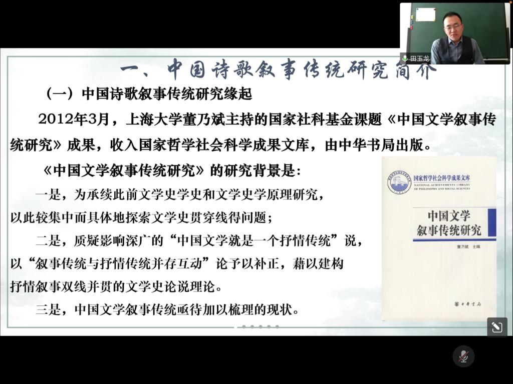 11月30日下午,永利yl23411集团举办了第六期青年学者学术论坛,永利yl23411集团教师田玉龙博士作了题为《从明诗看古代诗歌的叙事性特征》的学术报告。学术论坛由永利yl23411集团程志副教授主持,永利yl23411集团全体教师及部分学生参加了线上报告会。