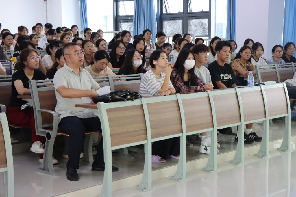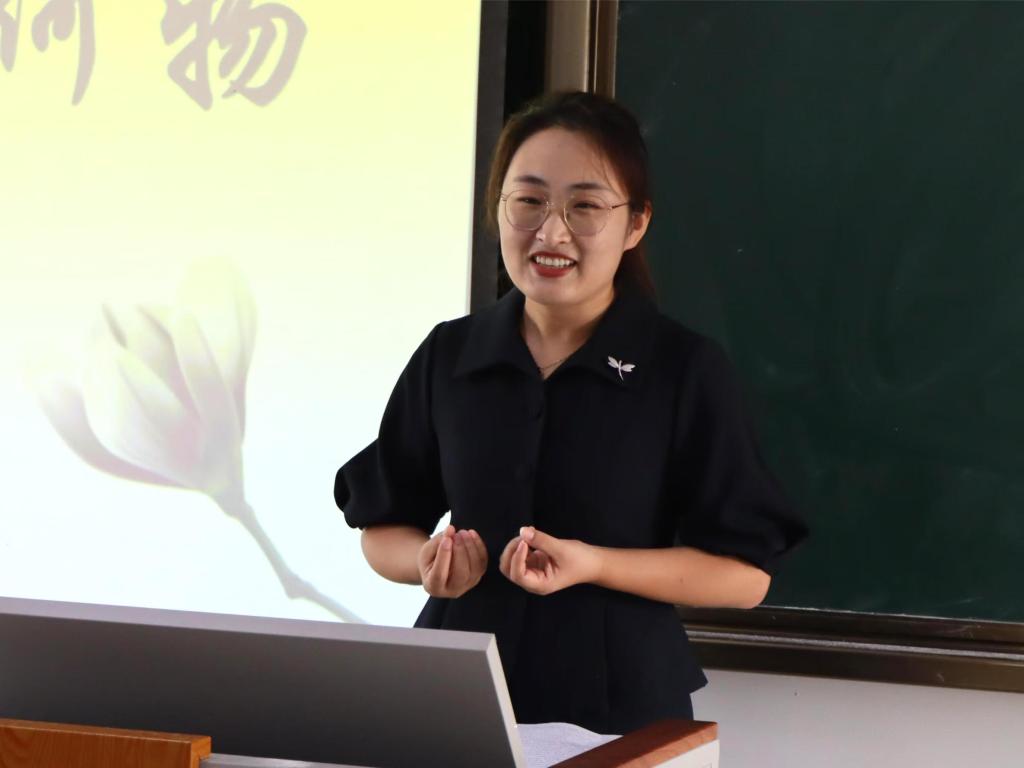 高婷婷老师以“师者”为主题,结合自身教学经历,从“敬”“诚”“省”三个方面对教师教学工作进行讲解。第一,敬畏职业,为党育人,为国育才;敬畏事业,在奋斗中实现教师的自我价值;敬畏学业,努力提升教学技能。第二,以真诚之心对待每一位学生,把教师最真诚的一面展示给学生,和家长携手共同呵护学生。第三,在循环往复的反思中成就自我,在教学实践中提升教学能力。针对师范生技能大赛,高老师强调一定要扎实学好专业知识,在备赛时思维要新、视野要广,在日常生活中注重师范技能的培养和提高。
