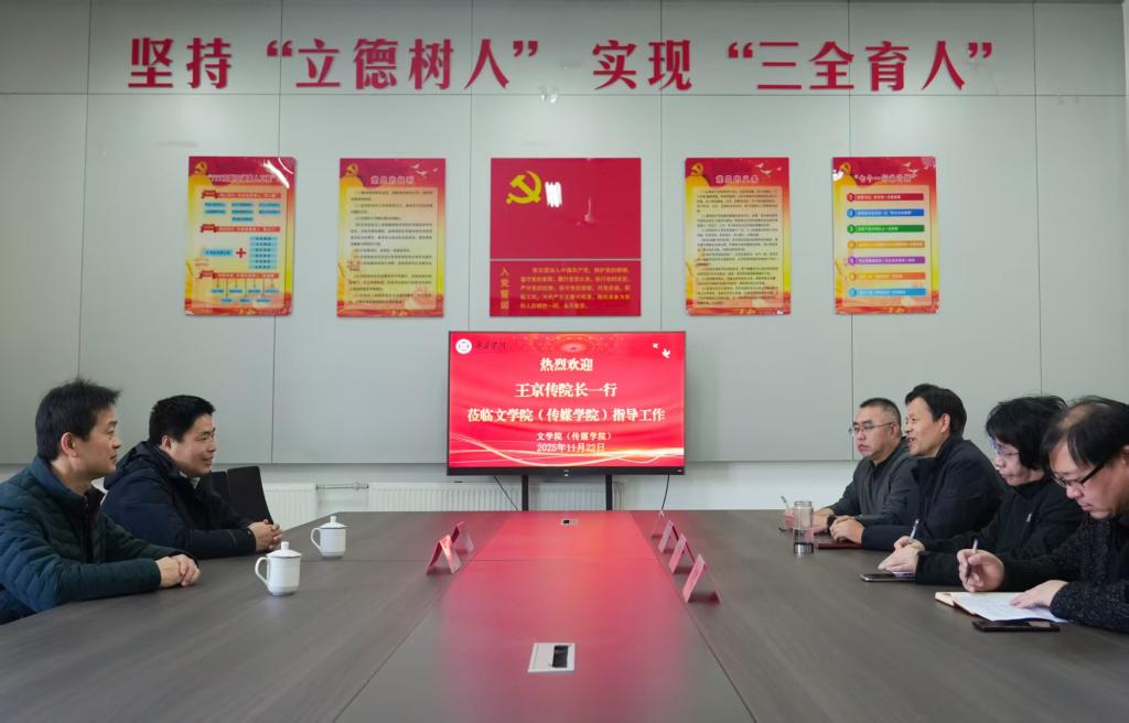 宋明峰对王京传一行来访表示热烈欢迎,对曲阜师范大学历史文化学院在我院学科建设、硕士点筹建过程中提供的帮助表示衷心感谢,并简要介绍了学校和学院的基本情况,表达了对未来两院间持续加强合作交流、共谋发展的美好期待。