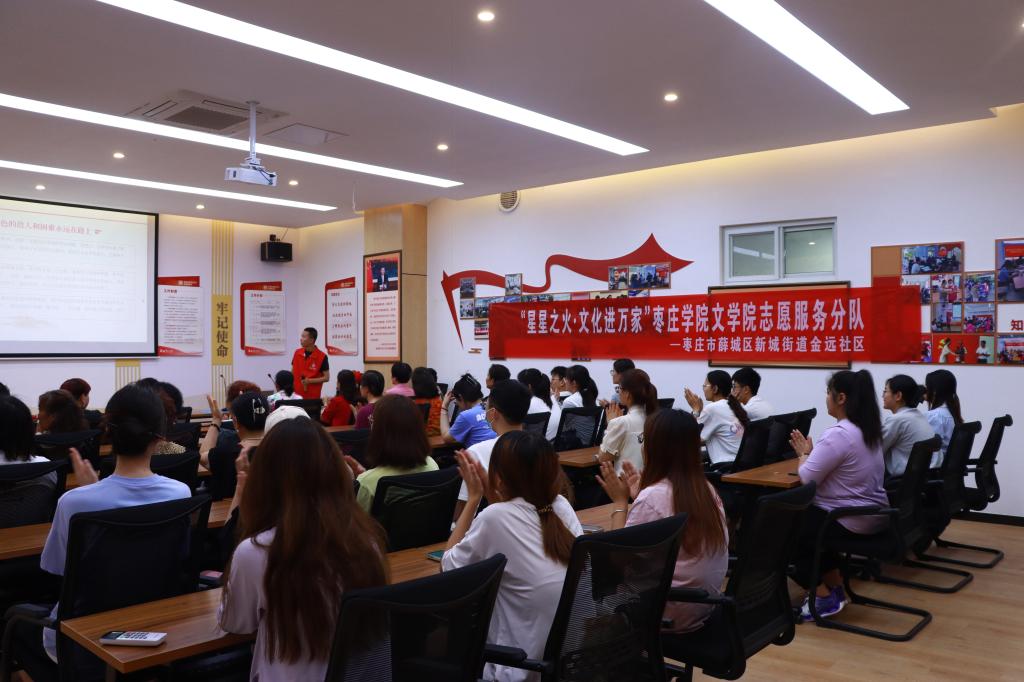 为深入学习贯彻习近平新时代中国特色社会主义思想主题教育,进一步响应团省委、省教育厅《关于开展“百万大学生进社区”社会实践的工作方案》部署要求,积极推进校地结对共建,永利yl23411集团团总支于6月13日,继续组织三十余名党、团员走进薛城区新城街道金远社区,开展“星星之火•文化进万家”社区实践活动,枣庄团市委副书记秦歌、青年发展部部长赵明皓莅临指导,金远社区团委书记闫馨月陪同。