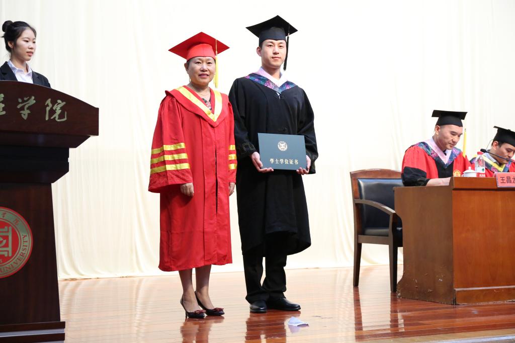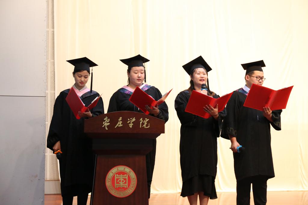 典礼在庄严的国歌奏唱中拉开序幕。在段圣玉宣读了《yl23411永利关于授予李春萌等138名永利yl23411集团2019届普通全日制本科毕业生学士学位的决定》后,李丽清亲自为全体本科毕业生一一拨穗并颁发学士学位证书,合影留念并送上祝福。随后,毕业生代表以诗歌朗诵的形式,饱含深情地感恩母校,感激恩师,祝福同学,展望未来。毕业生为教师代表送上美丽的鲜花,表达对老师的崇高敬礼。李思华老师代表全体老师为毕业生送上了殷切嘱托和深情祝福,希望同学们始终保持一份痴气、傲气与和气,向着自己的目标扬帆远航。最后,史大丰代表永利yl23411集团向圆满完成学业的360名毕业生表示最热烈的祝贺和诚挚的感谢,并希望他们始终坚持理想,保持年轻人的激情和信念,不忘初心、砥砺奋斗,前程似锦、鹏程万里。