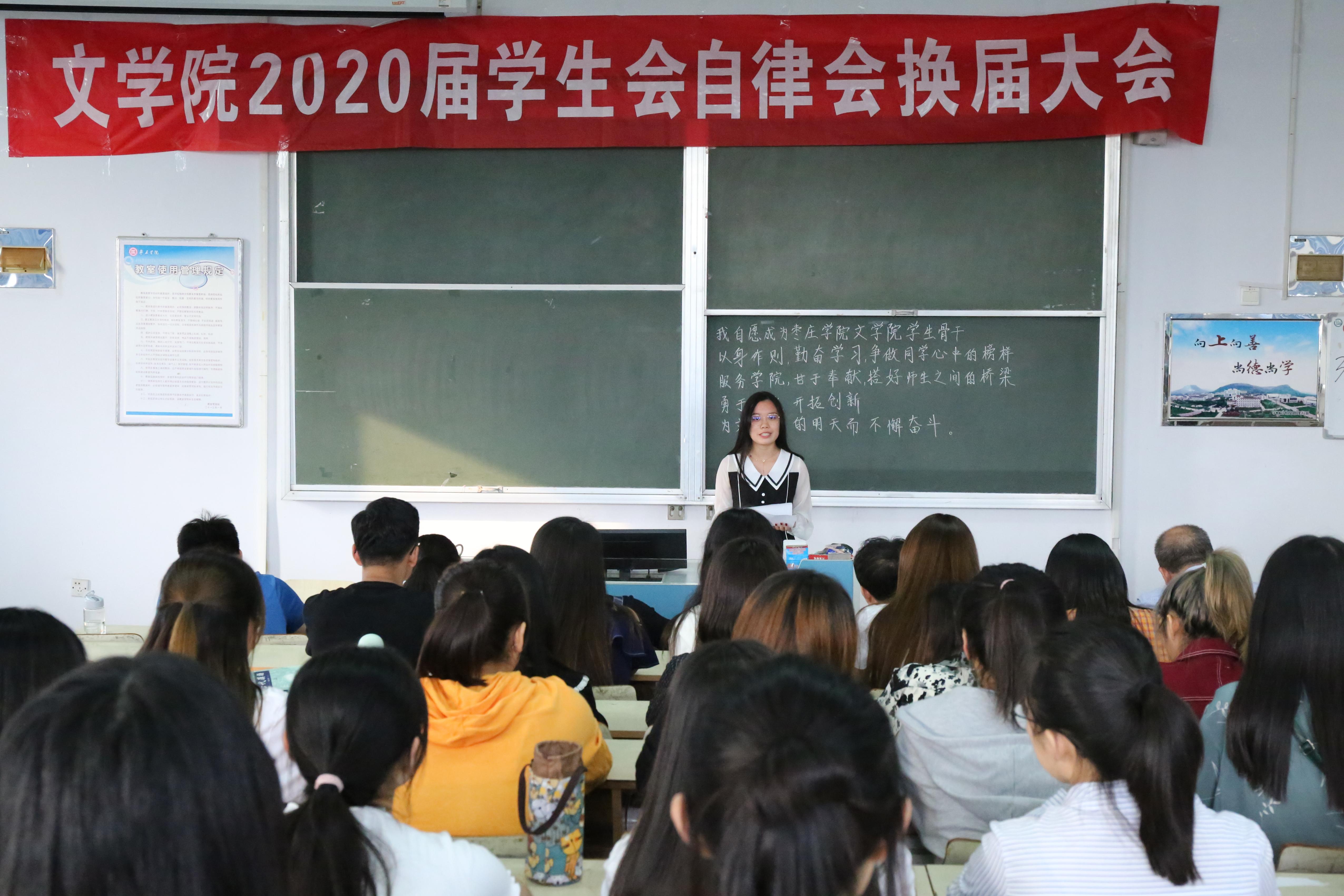 9月30日下午,永利yl23411集团在文科楼217举办2020届学生会、自律会换届大会。永利yl23411集团党总支书记宋建修老师、副书记王昌龙老师、各班辅导员老师及学生会、自律会新老成员80余人参加本次换届大会,本次会议由团总支书记韩笑老师主持。