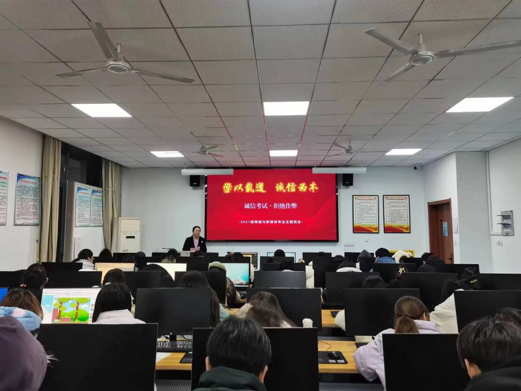 会上,辅导员老师强调了诚信考试、诚信做人的重要性,传达了学校有关考试的各项纪律和要求,介绍了考试违纪的相关处理规定,详细讲解了考试违纪、考场作弊所要承担的后果,告诫学生不要有侥幸心理。辅导员老师还叮嘱同学们认真复习,积极备考,充分利用好复习周的时间,考出好成绩;希望班干部充分发挥模范带头作用,以身作则,遵守考纪,引导大家树立正确的考试观、诚信观。最后,全体同学签写考试诚信承诺书,纷纷表示要杜绝作弊,做一名诚信、文明考生。此外,学院通过张贴海报等形式,加强宣传工作,端正学生态度,严肃考风考纪,努力营造良好的考风考纪氛围。