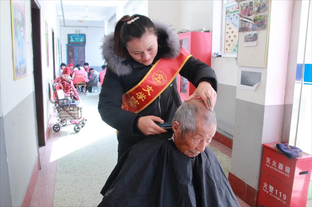 学院还特意聘请理发师为老人们理发、剃胡须,理完发的老人们清爽利落,对理发师连连赞扬,现场一片欢声笑语,让老人们度过了一个愉快的下午。