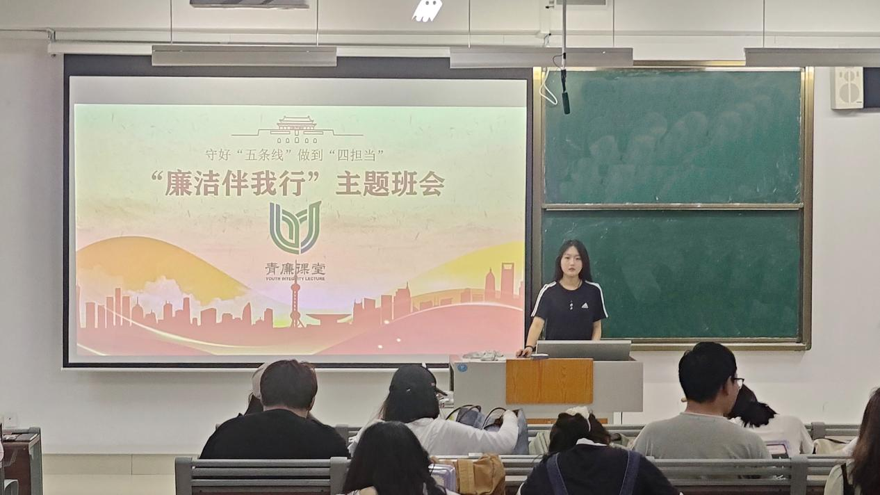本次主题班会由辅导员通过视频、图片、PPT等形式讲解了廉洁的内涵、意义以及在日常生活中的重要性,并通过案例分析让毕业生了解不廉行为的危害。同学们踊跃发言,就在校学习、生活等方面分享自己关于廉洁修身的感悟与理解,并探讨如何在未来工作中保持廉洁。
