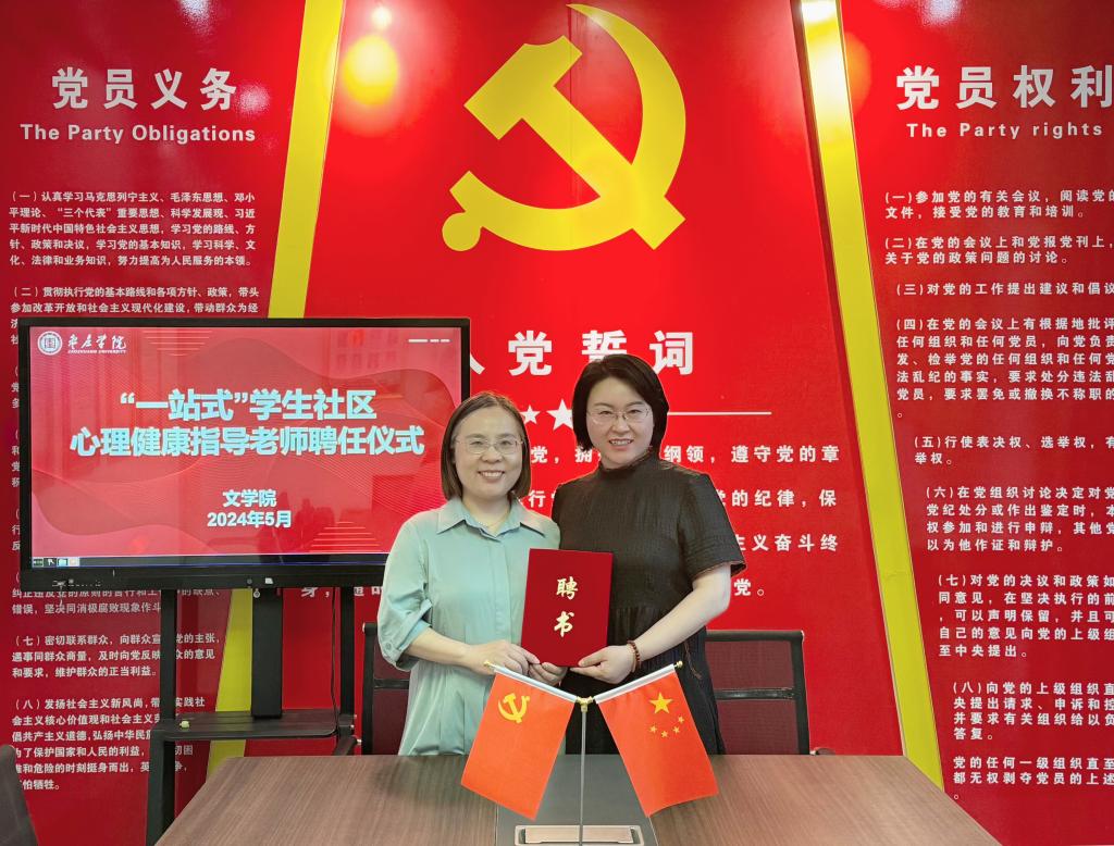 在聘任仪式上,永利yl23411集团为心理与教育科学学院朱海荣老师颁发“一站式”学生社区心理健康指导老师证书。