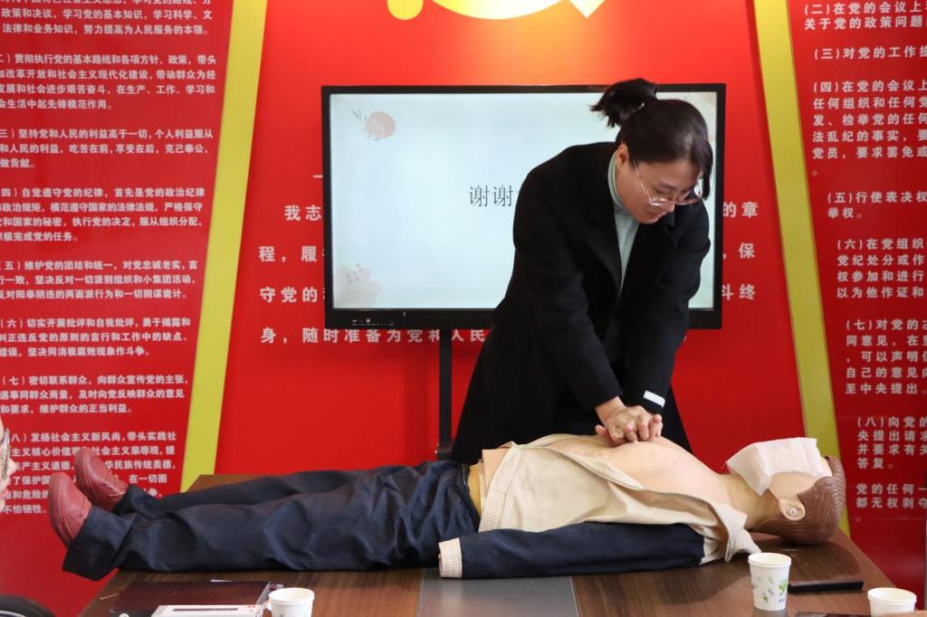 本次培训活动精心设计,分为理论教学和实际操作两大环节。在理论教学部分,刘祥艳通过真实案例,生动地强调了应急救护培训的重要性和必要性。详细讲解了气道异物梗阻处理、心肺复苏术以及绷带包扎等紧急救护知识。特别对心肺复苏的步骤以及自动体外除颤器的操作流程进行了深入讲解,并亲自演示了从评估环境安全、判断呼吸和意识、拨打120急救电话、调整患者体位、进行胸外按压、开放气道到实施人工呼吸的完整急救流程。