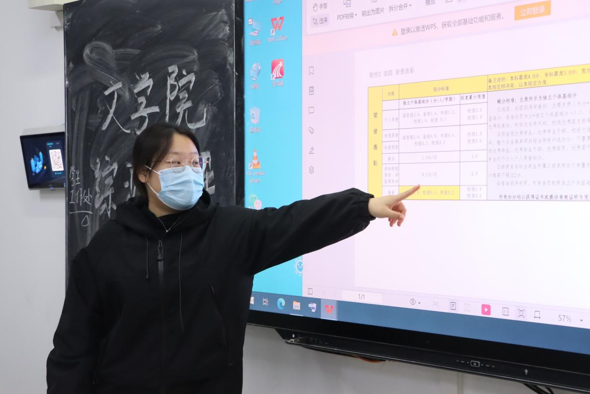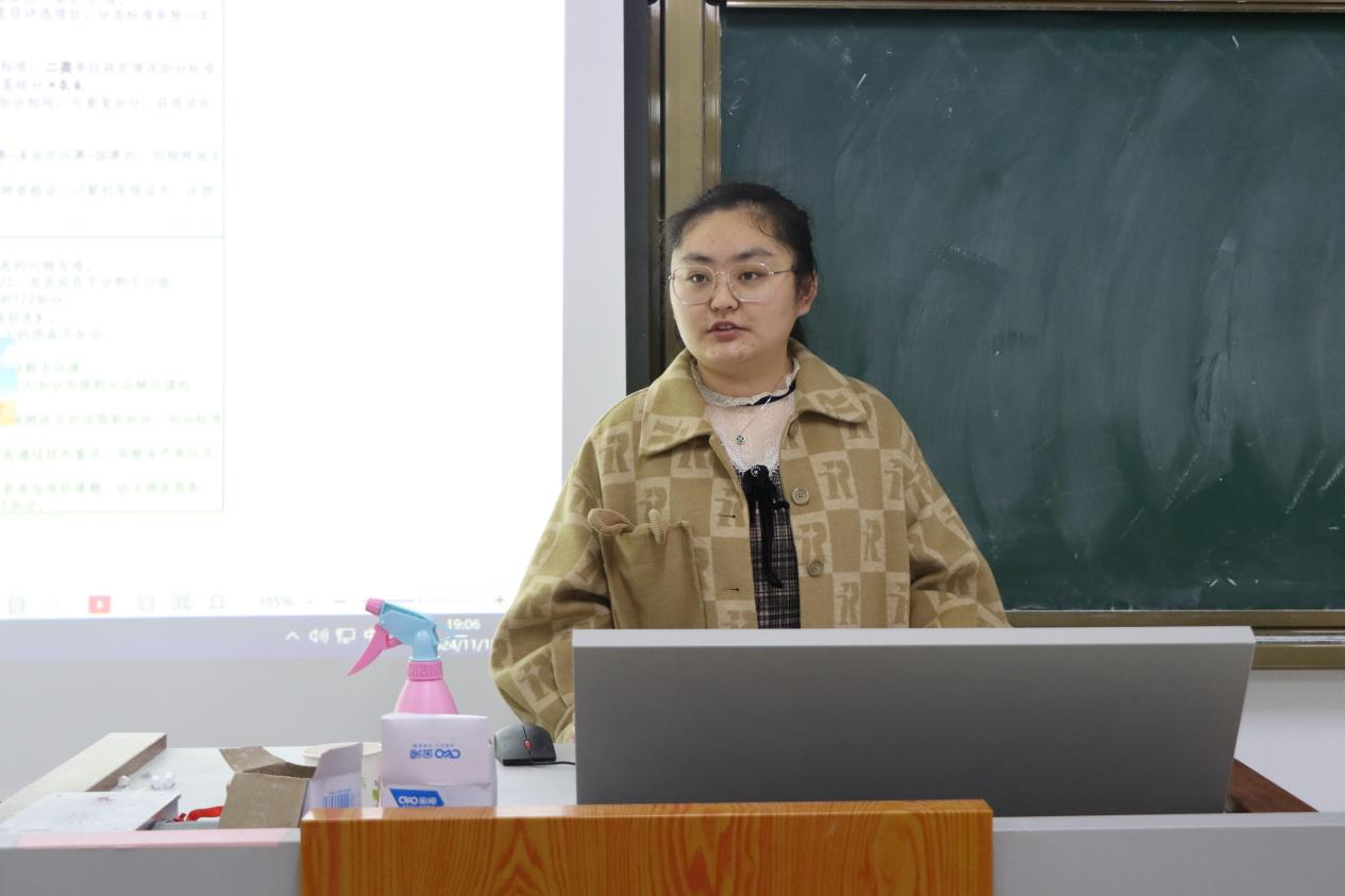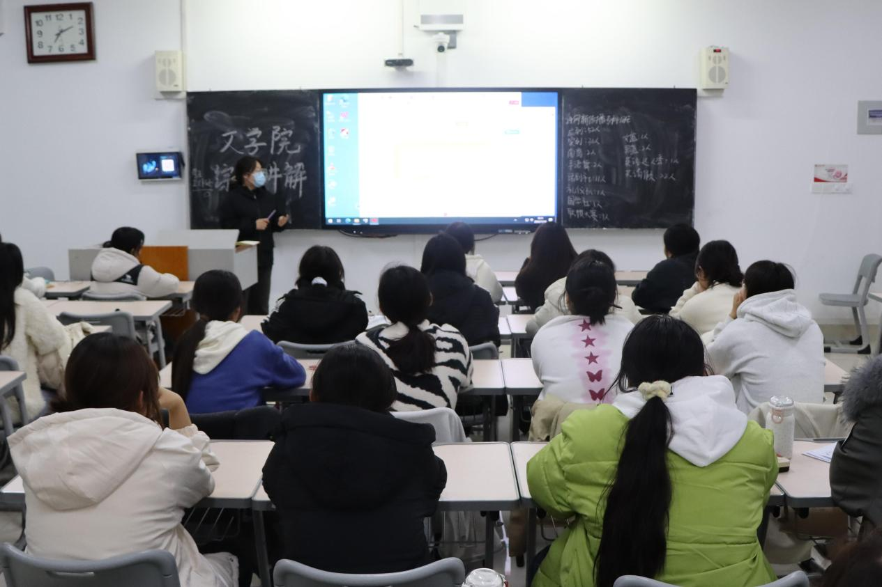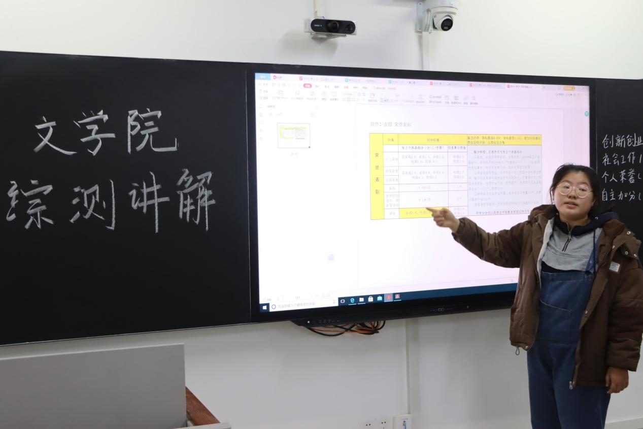 宣讲员首先向同学们详细介绍了测评程序,强调测评过程必须公开公平公正;指出综合测评内容主要包括德育素质、体育素质、美育素质、劳育素质、智育素质五部分,重点介绍了智育素质模块内容;在评奖评优模块,宣讲员向同学们逐一介绍了奖学金的类别、等级及评定比例,阐述了申报条件及评定程序等具体要求,帮助同学们更好地了解各项评奖评优工作的评选办法。宣讲员强调了文化成绩与道德品质的重要性,勉励同学们努力学习、锐意进取,争做新时代优秀大学生。互动环节,同学们积极提问,宣讲员耐心予以解答,现场气氛活跃。
