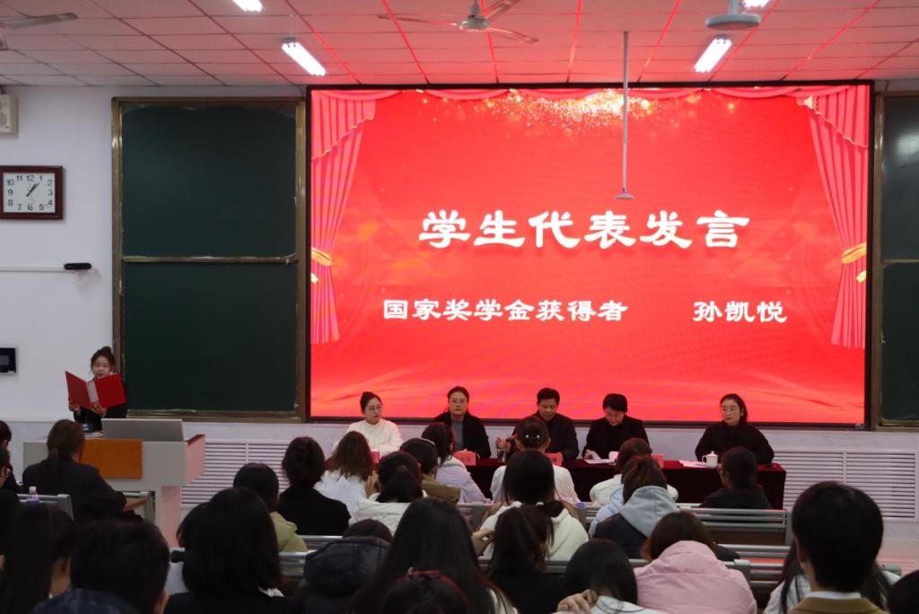 会上,华莹宣读了《永利yl23411集团关于表彰“以榜样树学风”2024年度先进集体、先进个人表彰决定》,依次为受表彰的先进集体和优秀个人颁奖,国家奖学金获得者孙凯悦、国家励志奖学金获得者孙康绮依次上台发言,通过分享学习经验及生活感悟,激励同学们积极向上,奋发图强。