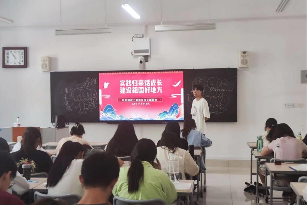 此次团日学习以实践经历分享为核心,旨在通过同学们的亲身讲述,展现实践活动对青年成长的重要作用。各班团支书及学生代表纷纷上台,分享了自己参与社会实践活动的所见所闻、所感所悟。从志愿服务到科技创新的项目研发,从文化传承的深入探索到生态环保的实际行动,充分展现了青年学子甘于奉献,做勇于担当的新时代青年。