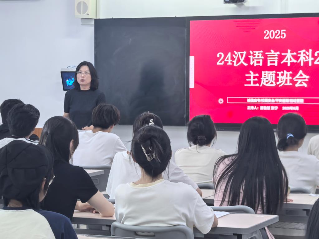 6月16日,学院在增信楼408-410室召开“诚信立身安全护航”期末主题班会。辅导员张宁主持,班主任赵妤、滕鲁慧出席,2024级汉语言专业全体学生参加。