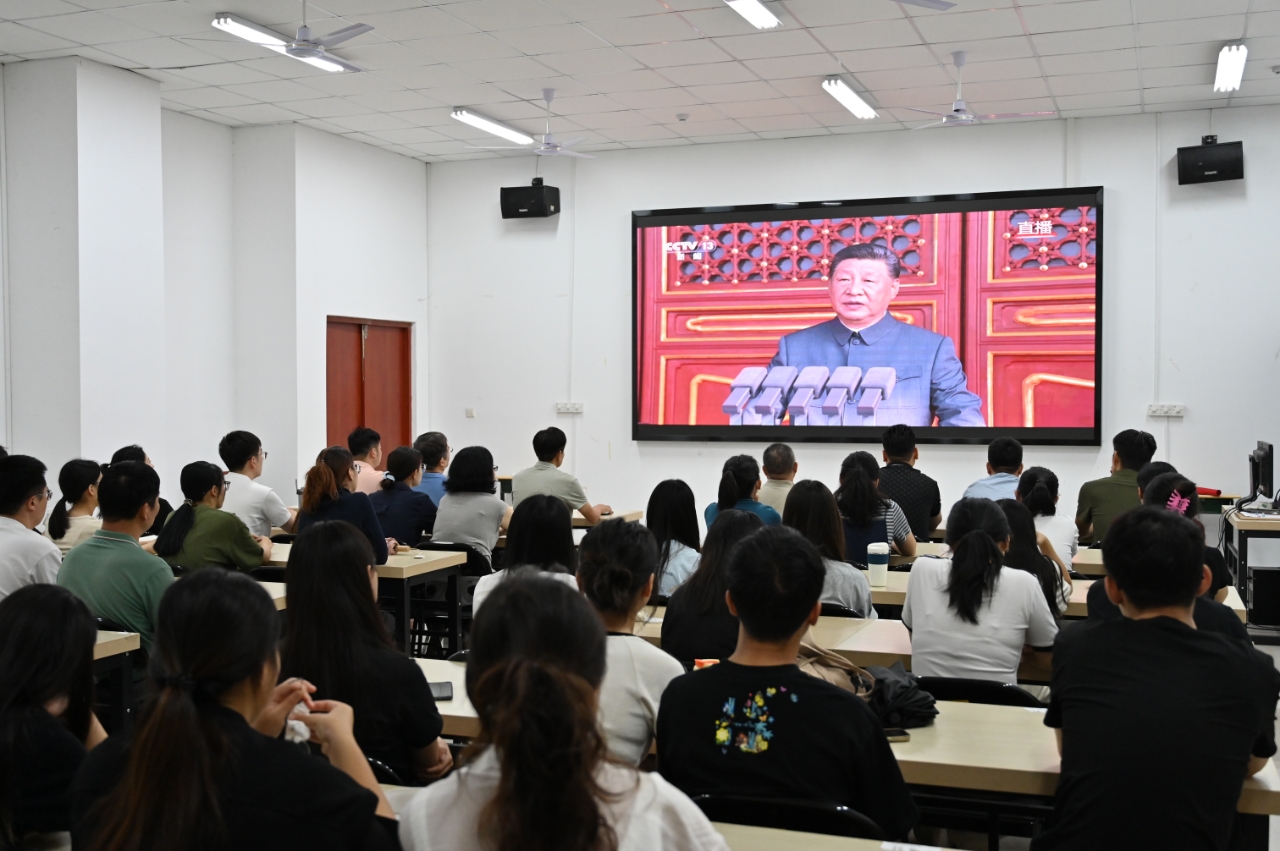 观看过程中,师生们全神贯注,被解放军战士的英姿和现代化国防力量所震撼,现场不时响起热烈掌声。直播结束后,师生们纷纷表示,阅兵式展现了国家强盛,激发了强烈的民族自豪感。