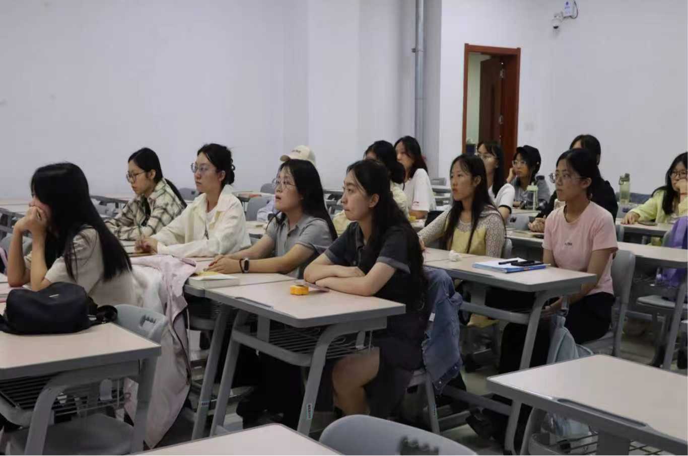 活动伊始,团支书阐述了主题团日活动的时代意义,号召全体团员从优秀实践案例中汲取成长力量,主动将个人成长融入社会发展。在实践分享环节中,参与“青鸟计划”的实践代表结合自身经历,从青鸟计划背景、实践内容、成果展示及心得感悟等方面,生动讲述在岗位上的付出与收获,让在场同学真切体会到实践的价值。参与“三下乡”实践的代表,则围绕活动内涵、前期筹备、开展过程、心得感悟及实践总结等方面分享所见所闻所感。其讲述细节丰富、感悟深刻,不仅让在场同学对“三下乡”活动有了更全面的认识,更激发了学生投身社会实践、服务人民群众的青春热情。