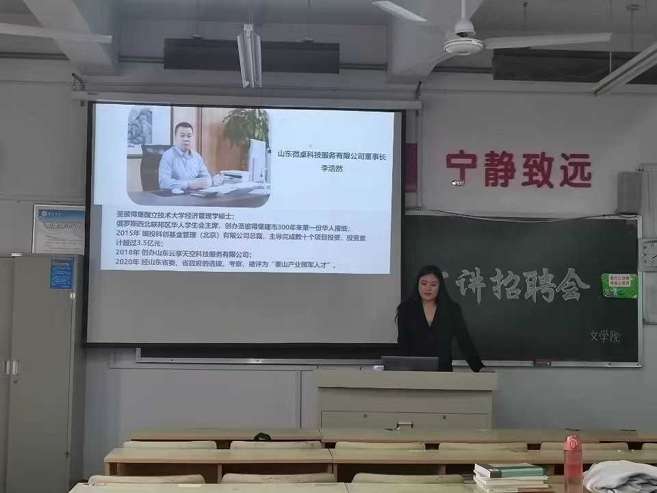 为给毕业生提供更多就业机会,缓解就业压力,找到合适的岗位。5月19日下午,永利yl23411集团于文科楼115教室举行了山东微桌科技有限公司校园宣讲招聘会,微桌科技的张晓羽老师主讲。