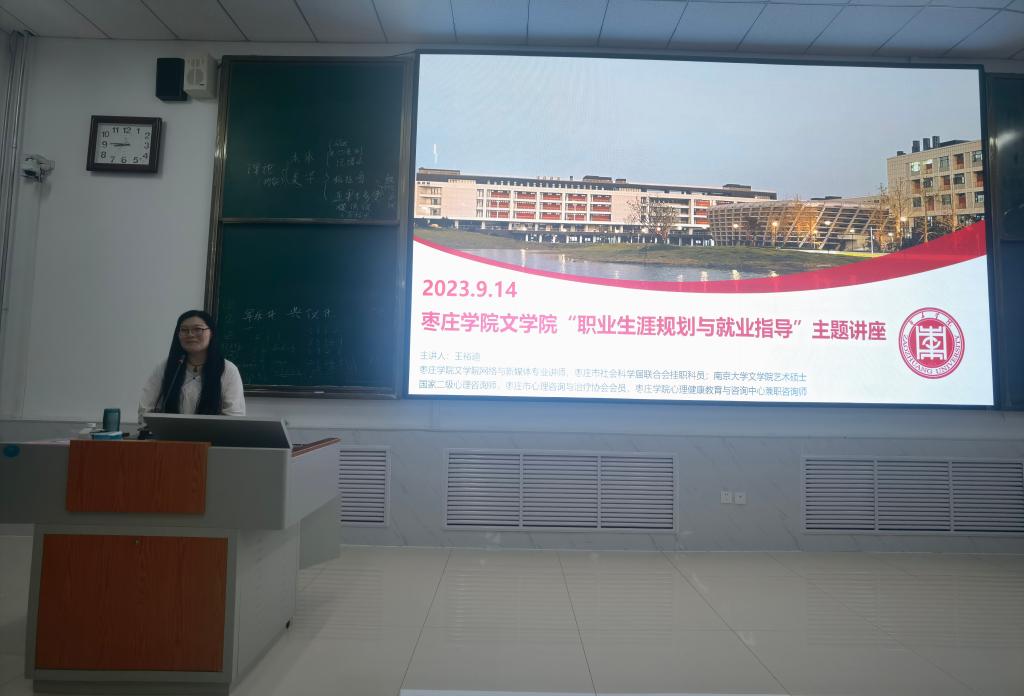 9月14日晚,永利yl23411集团于增信楼112教室举办了一场“职业生涯规划与就业指导”学生班会专题讲座。讲座由副书记华莹主持,特邀本院专任教师、国家二级心理咨询师王裕迪为主讲人,根据专业特性与时代发展的形势与政策进行分享交流。全体2021级网络与新媒体专业学生聆听此次讲座。