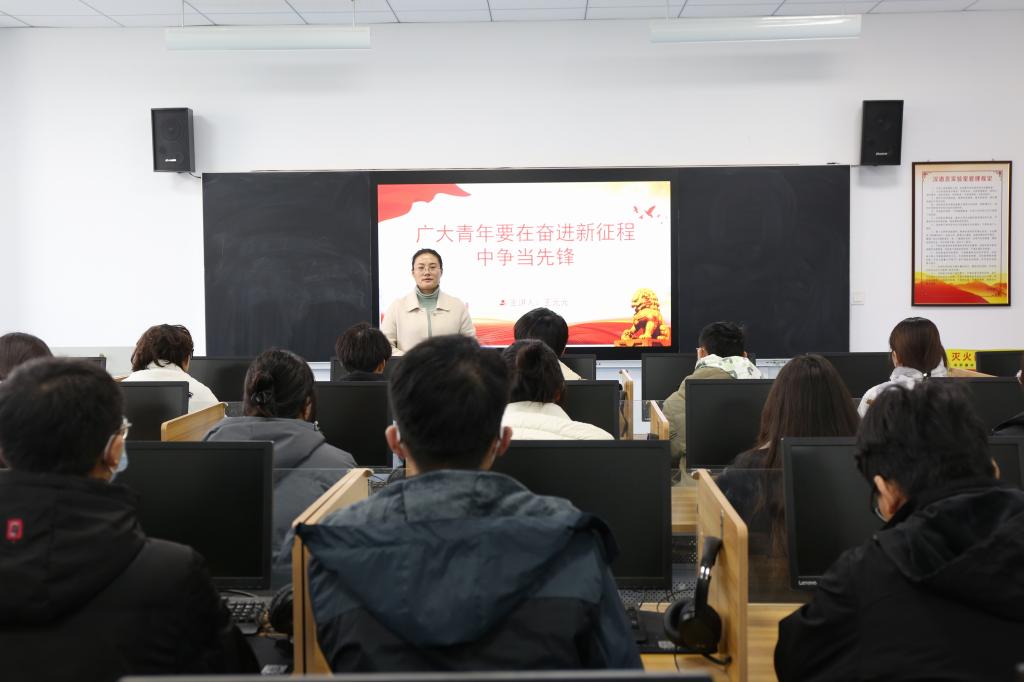 永利yl23411集团团总支书记王元元,以“广大青年要在奋进新征程中当先锋”为题,讲解了在政治方面,要争做具有远见卓识、政治信仰的青年;在精神方面,要争做敢于斗争、不怕牺牲的青年;在格局方面,要争做胸怀坦白、忠诚于党的青年;在利益方面,要争做不谋私利,集中力量为民族与社会谋解放的青年;在行动方面,要争做不畏艰难、脚踏实地的青年。她强调广大青年团员要树立远大理想,争做带头模范,勤奋学习,锐意进取,不断提高自身综合素质,努力成为德智体美劳全面发展的社会主义建设者。