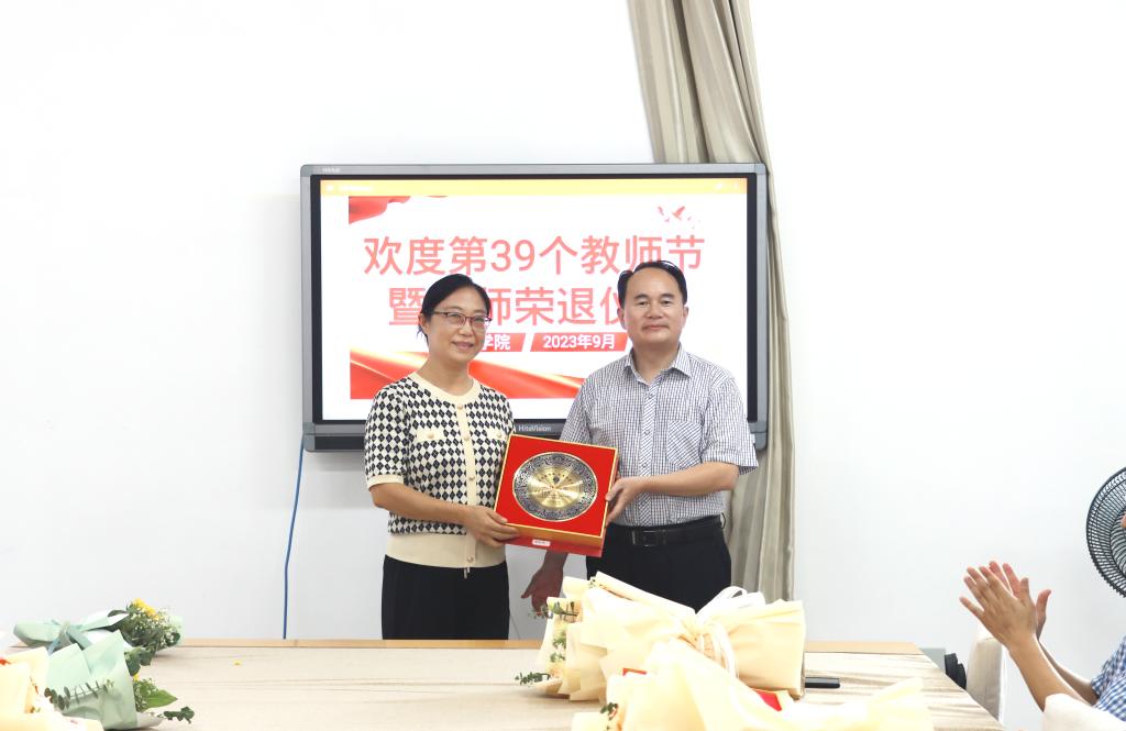 宋建修表示,退休不意味着终止,而是开启了人生的另一个新起点,本次教师节庆祝活动暨荣退仪式,既是对教职工辛勤工作的肯定,也表达了对全院教职工的深情祝福。学院将继续关心、关爱退休教职工,做有温度的“桥梁”,凝心聚力,开拓创新,为党育人,为国育才,不断提升人才培养质量。