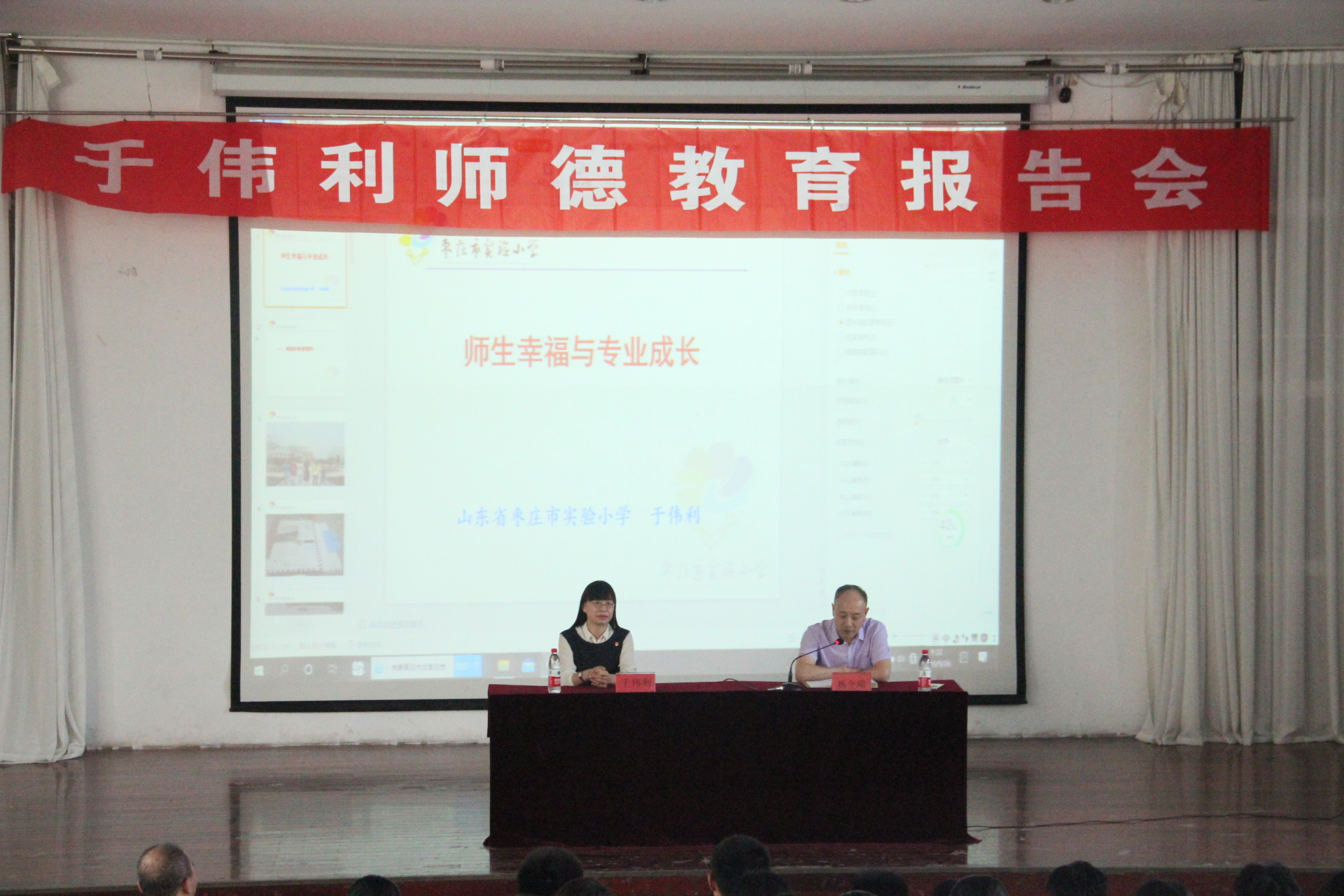 9月26日上午,永利yl23411集团在文科楼报告厅举行了名师工作坊专家教育报告会,邀请国家“万人计划”领军人才,享受国务院政府特殊津贴专家,特级教师,正高级教师,全国教学名师,全国首届教育部“领航名师”、国家首届名师名校长“领航班成员”,全国小学语文课堂教学大赛特等奖,全国十佳班主任,全国三八红旗手,国家专利获得者,枣庄实验小学校长于伟利来永利yl23411集团做师德教育报告。永利yl23411集团副院长杨全顺主持了报告会,永利yl23411集团2021届师范专业毕业生及汉语言文学专业的学生参加了报告会。