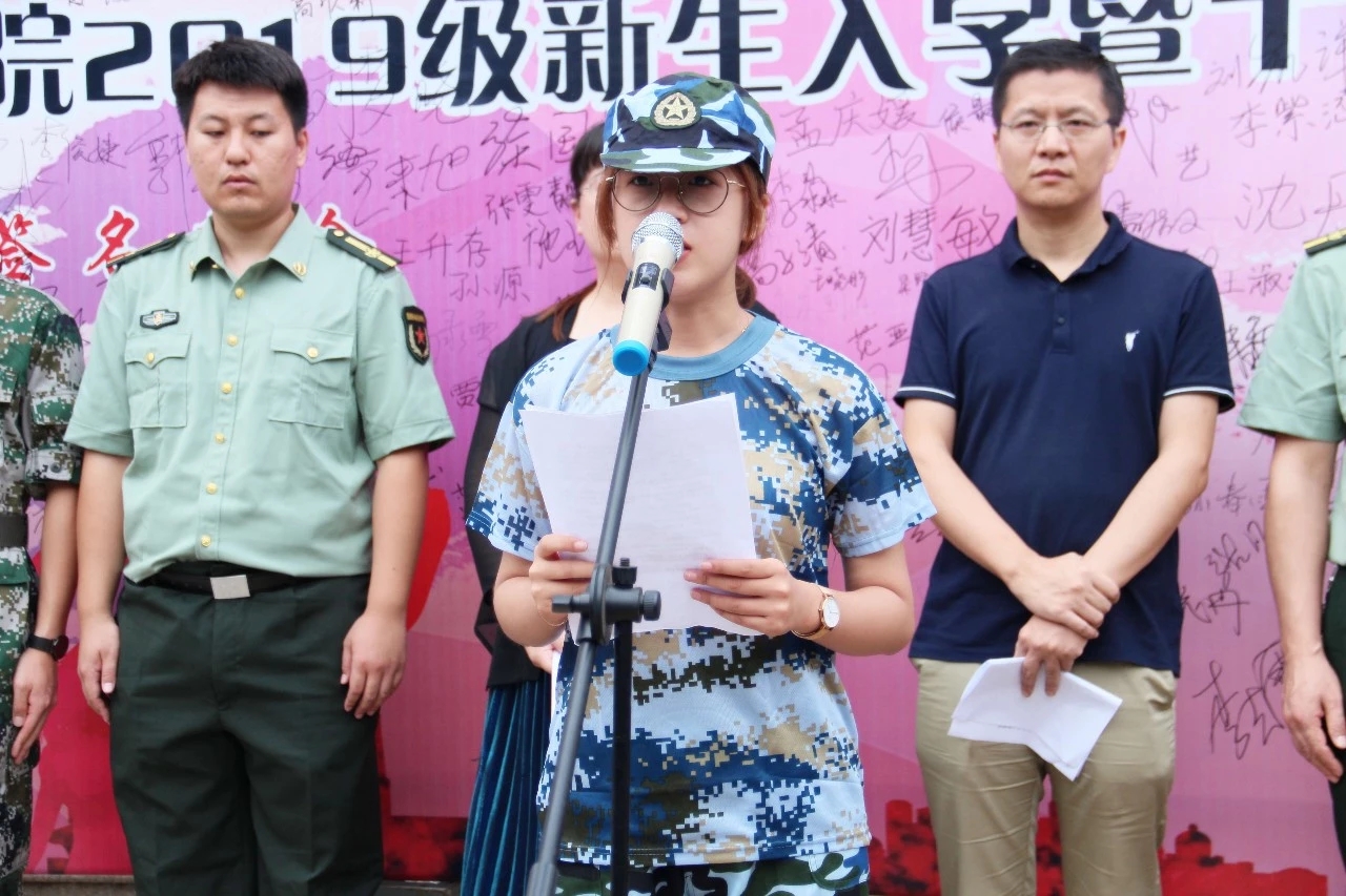 党总支副书记王昌龙致军训动员讲话,号召同学们牢固树立国防意识,艰苦训练,在军事训练中增长才干,严守纪律争创佳绩。并预祝本届军训取得圆满成功,预祝同学们取得优异成绩。