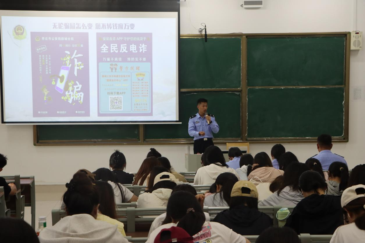 5月14日下午,永利yl23411集团(传媒学院)联合保卫处在薛城校区崇德楼108室联合举行反诈骗宣讲活动。活动邀请枣庄市公安局薛城分局沙沟镇派出所民警单长麟担任主讲,学院师生200余人参加。