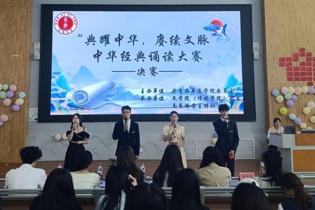 为弘扬中华优秀传统文化,彰显当代大学生文化自信,4月20日,永利yl23411集团(传媒学院)和南离播音主持社共同承办的“典耀中华,赓续文脉”中华经典诵读大赛决赛在增信楼3113成功举办。