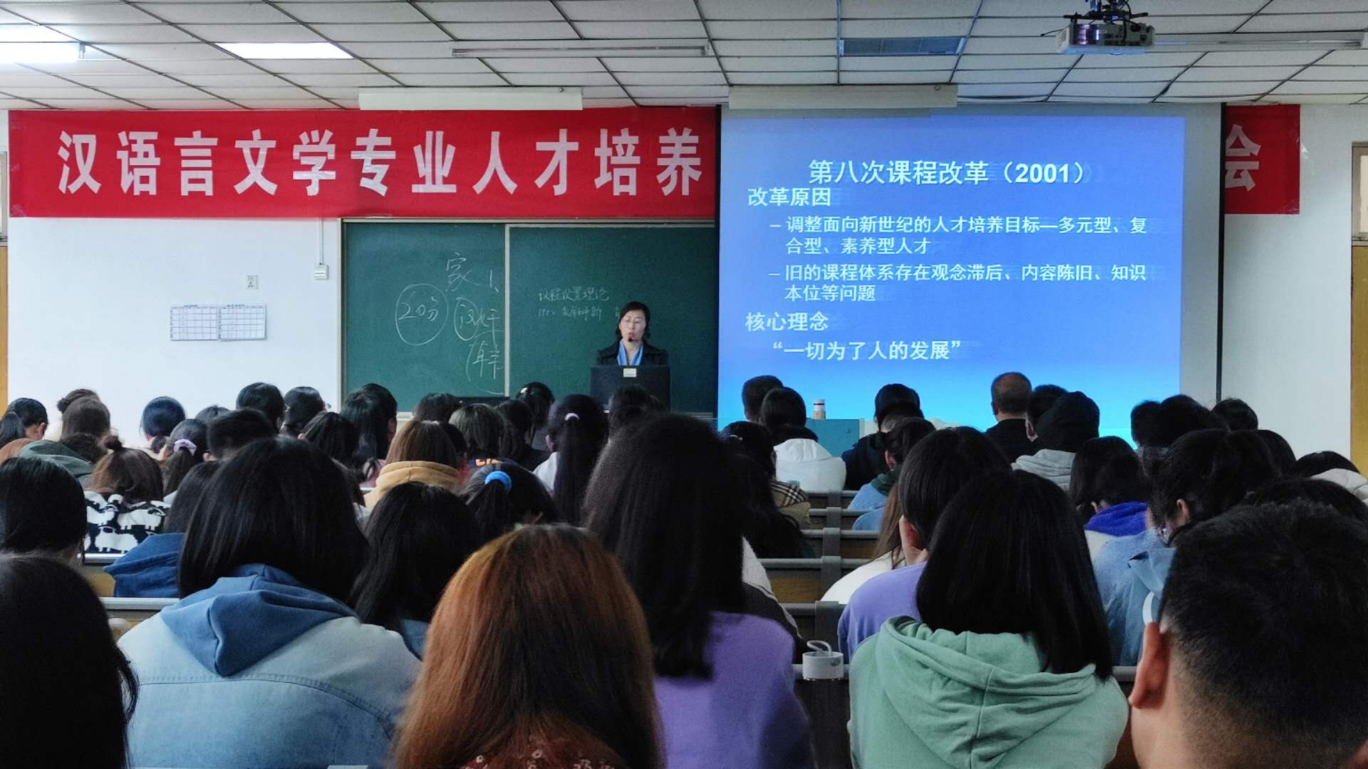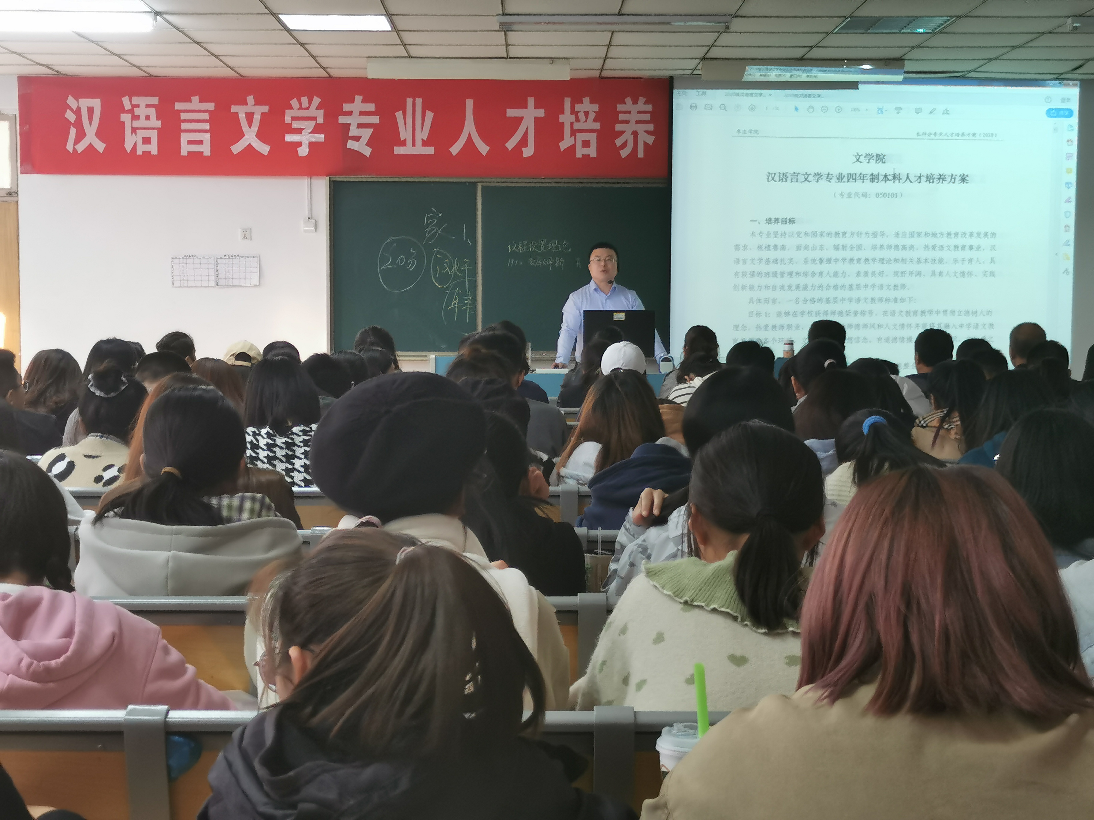 汉语言文学专业负责人张凯老师对人才培养方案进行进一步解读,张老师强调一名合格的中学教师不仅要掌握扎实的汉语言文学基础知识,而且要在语文教育中贯彻立德树人理念,树立终身学习和专业发展意识。