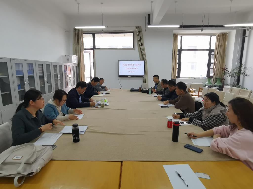4月15日上午,永利yl23411集团在新城校区豁然楼B310室召开了汉语言文学专业二级认证中期改进工作研讨会。永利yl23411集团院长张爱民教授、副院长段圣玉副教授、专业负责人、教研室主任以及参加认证工作的相关教师参加了本次研讨会。