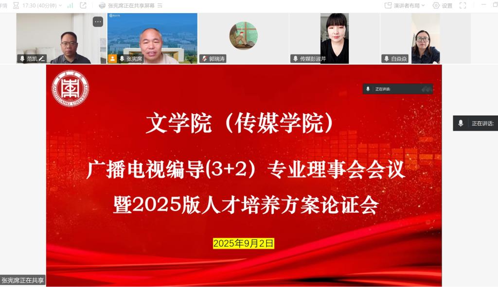 为进一步优化广播电视编导(3+2)、影视编导专业人才培养方案,适应行业发展与教育教学改革需求,9月2日,永利yl23411集团(传媒学院)在线上召开广播电视编导(3+2)、影视编导专业理事会会议暨2025版人才培养方案论证会。