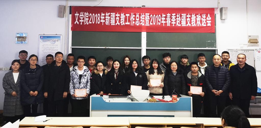 2月27日下午,永利yl23411集团在文科楼217室举行了2018年新疆支教工作总结暨2019年春季赴疆支教欢送会。学院党政领导、辅导员老师、2018年新疆支教归来的18名同学及2019年上半年即将奔赴新疆喀什的32名同学参加了会议。院党总支副书记王昌龙主持了会议。